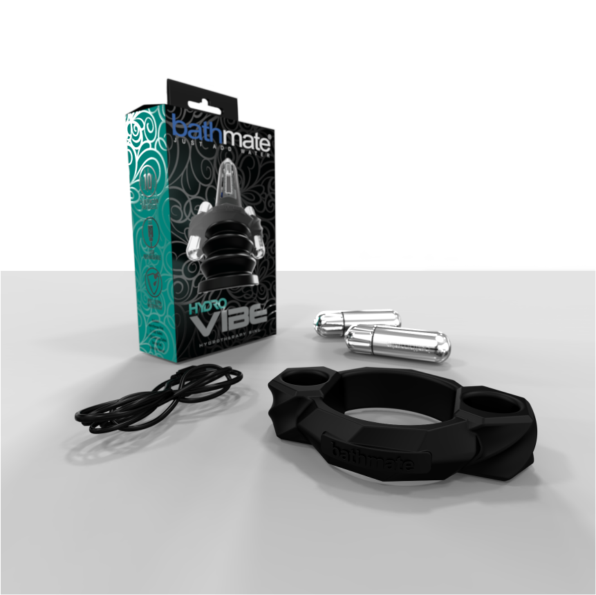 The Bathmate HydroVibe adds a vibrating element to your Bathmate, with a simple-to-use design letting you easily maximise your blood flow for unprecedented size and hardness gains. The HydroVibe fits perfectly around the outside of your Bathmate, just above the bellows, with spaces for placing the twin Bathmate Vibe Bullet Vibrators (included).
